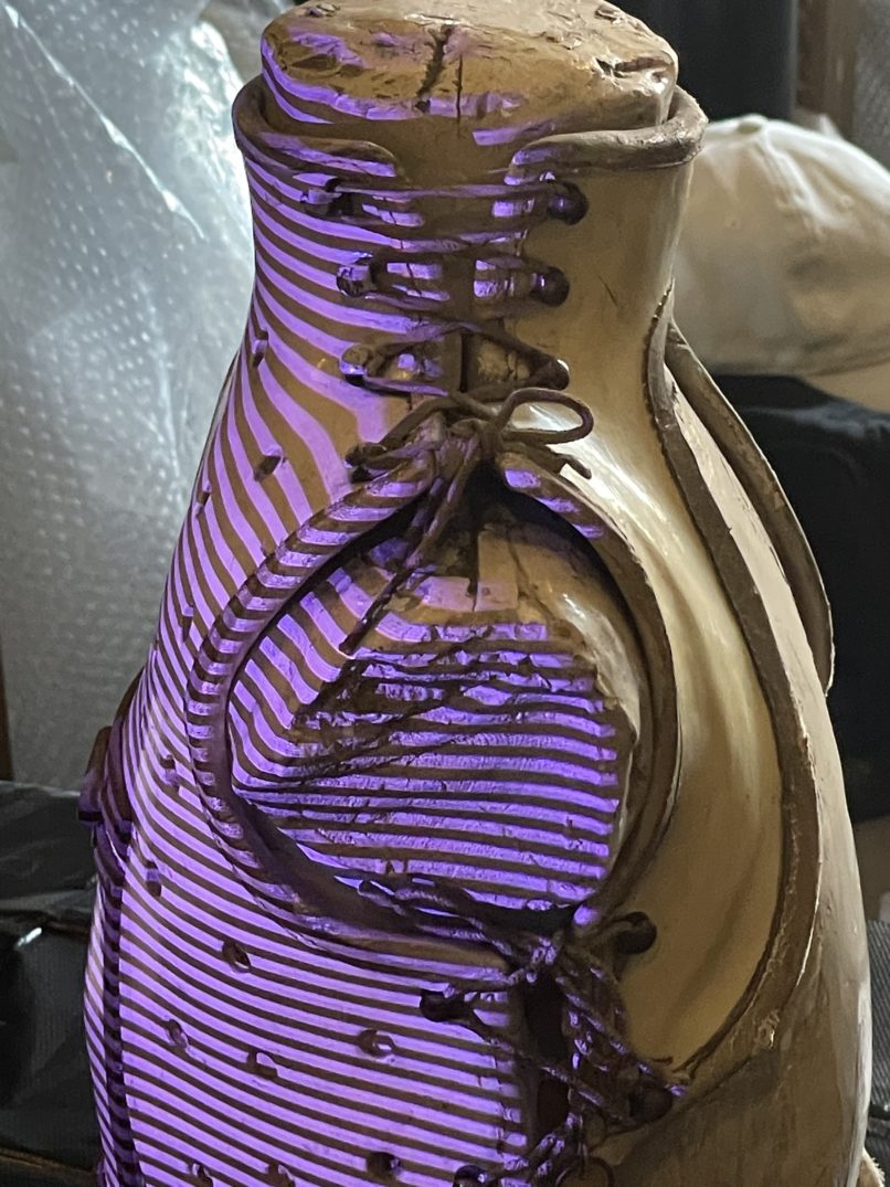 We could study the archival collection at the museum and had the chance to work closer with objects we chose for photogrammetry/ 3D scanning. The pieces chosen to develop into 3D models were support corsets for children who had bone pneumonia in the 18th.century. We talked about how the corsets would have a new funktion as support structure for the mycelium we added to the material when 3D printing it. The pieces are now left to grow for six moths until summer 2023.