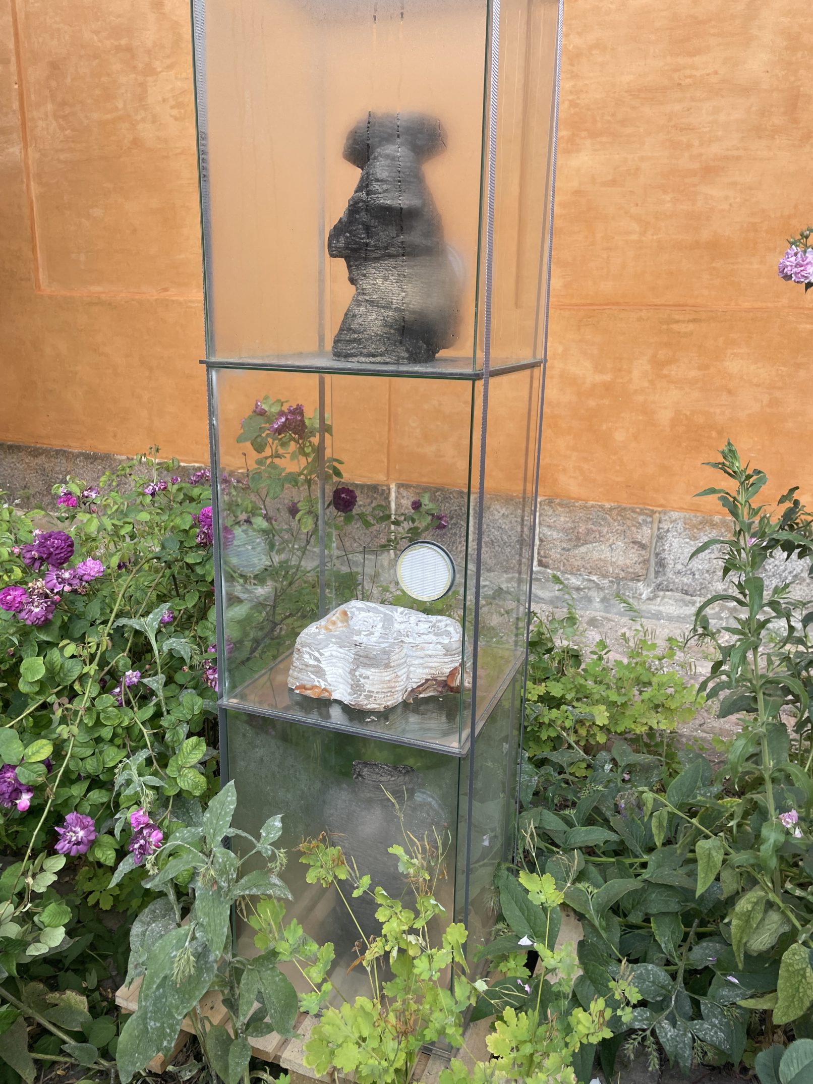 In April 2023 the sculpture cabinet was moved from the basement setting in the Living Room, to an outdoor setting in the beautiful garden behind the Medical Musion.